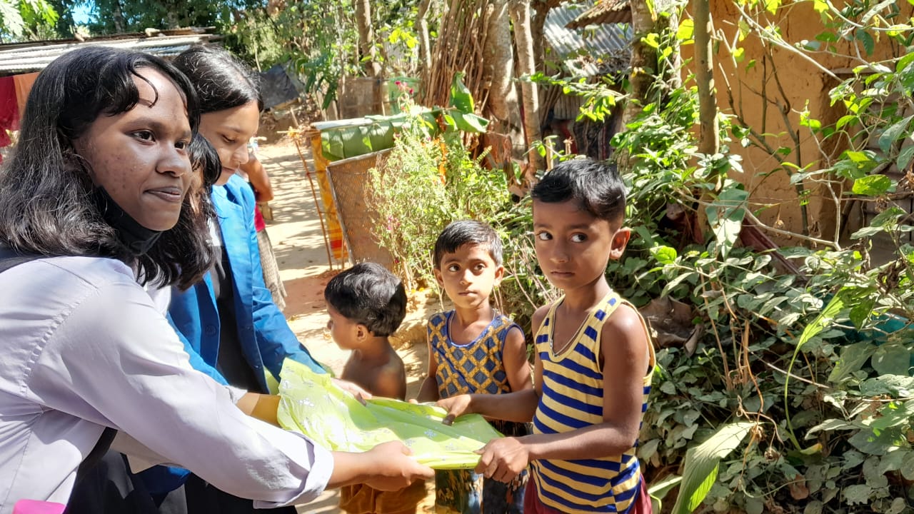 Proceeding to the next phase of the Service Act, as per the plan, the students along with their teachers spread all around the Udaipur town- Some students went to the surrounding village, some went to two brick industries, Chandrapur; some went to an orphanage home, Amtali; some went to an old age home, Sadhana Dayamoy Sevashram and some went to the sub-division hospital. They spent their quality time with the people, trying to understand their struggles and needs. Books, pens, pencils, erasers, and sharpeners were given to the children of poor families in the neighbourhood community. Old clothes were distributed among the labourers and their families at the brick industries. Blankets were given to the needy people in various areas of the town and in the old age home. Bed sheets, pillow covers and fruits were given to the orphans in the children’s home. Fruits were distributed to patients, doctors, nurses and other staff of the subdivision hospital.